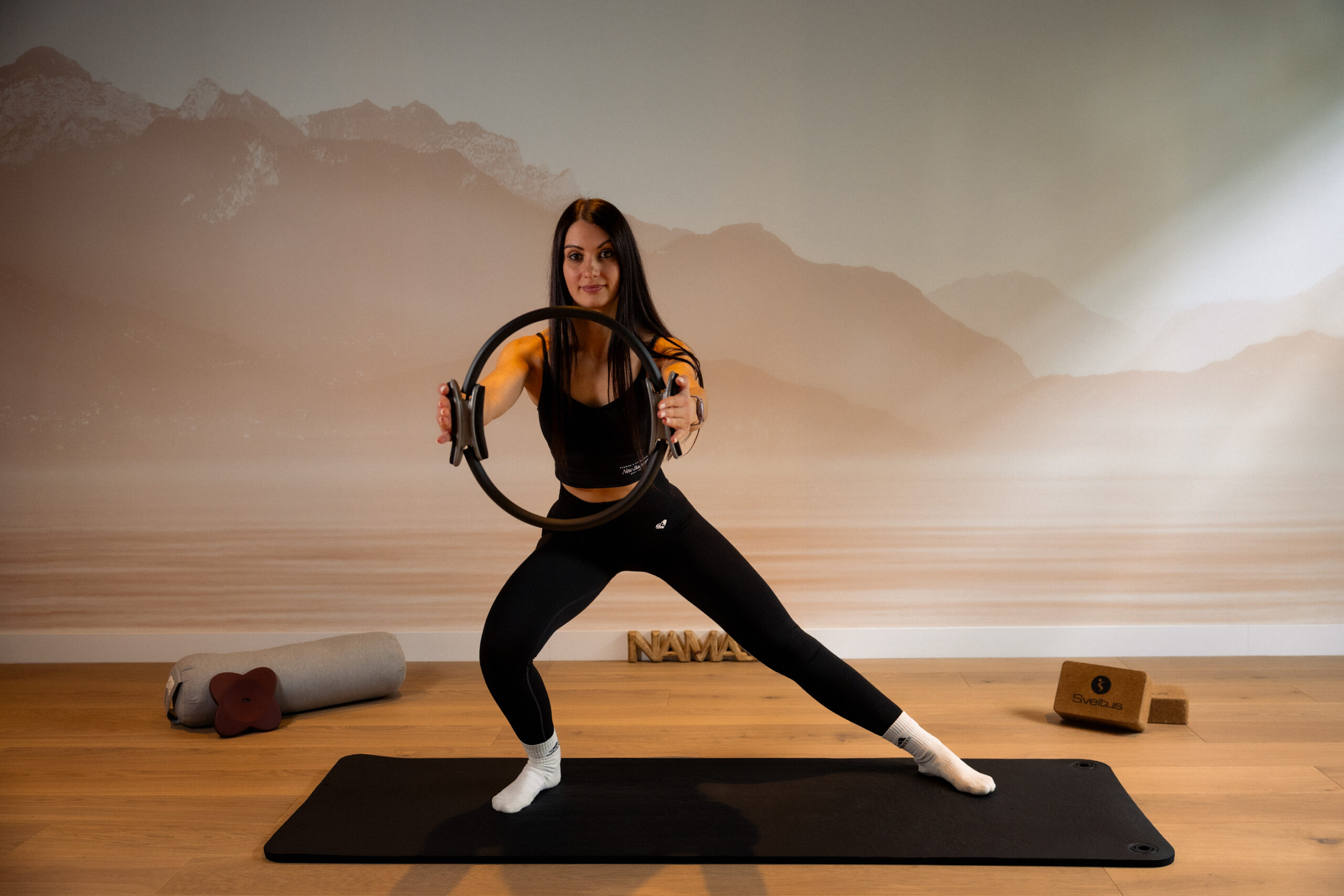 Le Pilates Tapis se pratique au sol, à l’aide d’accessoires (cercles, ballons, élastiques). L’objectif : renforcer le centre du corps, améliorer la posture et gagner en souplesse grâce à des mouvements lents et contrôlés.